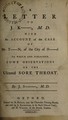 A letter to J. K-, M.D. [i.e. John Kelly] with an account of the case of Mr. T-n, of the city of O-d : To which are subjoined, some observations on the ulcered sore throat / By J. S-, M.D. [i.e. John Smith].