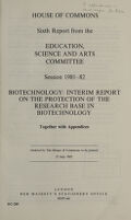 Biotechnology : interim report on the protection of the research base in biotechnology. Sixth report, Session 1981-82 / [Education, Science and Arts Committee].