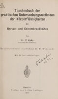 Taschenbuch der praktischen Untersuchungsmethoden der Körperflüssigkeiten bei Nerven- und Geisteskrankheiten / von V. Kafka.