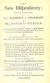 The new dispensatory : containing, I. the elements of pharmacy : II. the materia medica, or, An account of the substances employed in medicine; with the virtues and uses of each srticle, so far as they are warranted by experience and observation : III. the preparations and compositions of the new London and Edinburgh pharmacopoeias; with such of the old ones as are kept in the shops; the most celebrated foreign medicines; the most useful of those directed in the hospitals; sundry elegant extemporaneous forms, &c. digested in such a method as to compose a regular system of pharmacy; with remarks on their preparation and uses; the means of distinguishing adulterations; of performing the more difficult and dangerous processes with ease and safety, &c. : the whole interspersed with practical cautions and observations / by W. Lewis, M.B.F.R.S.