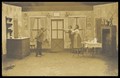 Three actors performing at a prisoner of war camp in Münster. Photographic postcard, ca. 1916.