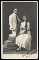 Ern and Chick, two actors, Chick in drag, pose in summer attire. Photographic postcard, ca. 1918.