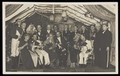German actors, some in drag, gather on stage at a party. Photographic postcard, 1930-45.