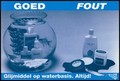 A healthy and a dead goldfish representing safe and unsafe lubricants; an advertisement for water-based lubricants. Colour lithograph by Chris Bal and Wilberto van den Bogaard for The AIDS Team in Antwerp, ca. 1995.