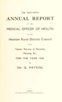 [Report 1938] / Medical Officer of Health, Hexham R.D.C.