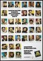 Numerous named photographs of men and women each holding different brands of condoms representing a safe sex and anti-AIDS advertisment for the LandÆKNISEMBÆTTID. Colour lithograph, ca. 1987.