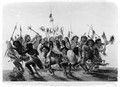 M0005518: Illustration of a Maori man performing the tutu ngarahu war dance