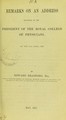 Remarks on an address delivered by the President of the Royal College of Physicians, on the 11th April, 1870 / by Edward Bradford.