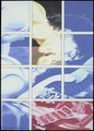 A couple kiss next to a tray of stubbed out cigarettes and half torn condom packets and lubricant within a grid-like composition; advertising the danger of AIDS. Colour lithograph by Nazario, 1994.