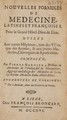 Nouvelles formules de medecine latines et françoises pour le grand Hôstel Dieu de Lyon. Utiles aux autres hôpitaux tant de villes que des armées & aux jeunes medecins, chirurgiens & apothicaires / composées par Pierre Garnier.