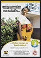 A pregnant woman stands outside a health centre: malaria prevention during pregnancy in Kenya. Colour lithograph by Ministry of Public Health and Sanitation, 2010.