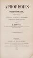 Aphorismes d'Hippocrate / traduits en français, avec le texte [grec] en regard, accompagnés d'un argument et de notes par É. Littré.