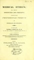 Medical ethics, or, A code of institutes and precepts adapted to the professional conduct of physicians and surgeons : with additions illustrative of the past and present state of the profession and its collegiate institutions in Great Britain / by the late Thomas Percival.