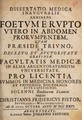 Dissertatio medica inauguralis exhibens foetum e rupto utero in abdomen prorumpentem ... / eruditorum examini subjiciet Christianus Fridericus Pistor.