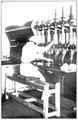 M0003206: Female worker operating a rag cutting machine with multiple spindles / M0003206EA: View of workers in a rag cutting room in a paper mill