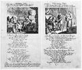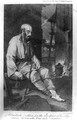 A wizened old woman with her dog, with the story of their bravery at the battles of Belgrade and Dettinghen. Line engraving, c.1743, after Winder.