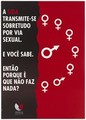 White male and female symbols on red arranged as if the right side of a clock with the male symbol as the hands; with a message in Portuguese about how AIDS is transmitted through [unprotected] sexual contact; an advertisement by the Comissào Nacional Luta Contra la SIDA, Ministério de Saúde. Colour lithograph by Latina, ca. 1995.