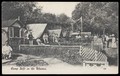 People relaxing at a summer camp on the Thames. Photographic postcard, ca. 1911.