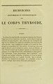 Recherches anatomiques et physiologiques sur le corps thyroïde : thèse pour le doctorat en médecine, présentée et soutenue le 24 juillet 1851 / par Édouard-Joseph Gallois.