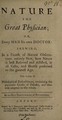 Nature the great physician, or, Every man his own doctor : shewing, in a course of natural observations entirely new, how nature is best relieved and assisted, in all cases, and health preserved to the greatest age with variety of philosophical resemblances, explaining the particular causes of diseases, and likewise adapted to the whole / by an old gentleman of fourscore.