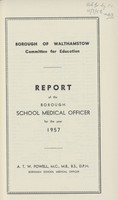 - [Report of the Medical Officer of Health for Walthamstow].Walthamstow (England). Borough Council.Date: [1957?]