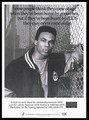A black youth wearing a gold chain and bomber jacket leans against a wire fence with a warning about the risk of sexually transmitted diseases in the young; a poster from the America responds to Aids advertising campaign. Lithograph, 1993.