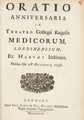 Oratio anniversaria in theatro Collegii Regalis Medicorum Londinensium, ex Harvaei instituto habita die xviii Octobris A.D. mdcc xxxv / [Sir Edward Wilmot].