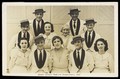 Members of "Harry Gold's Margate Entertainers", one in drag, pose for a group portrait. Photographic postcard, 1937.