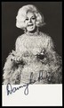 Mrs. Shufflewick (Rex Jameson), in drag character, holding a cup of tea. Photograph, ca. 1955.