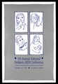 A girl holding a teddy, a hand on the shoulder of another girl, a boy being tested with a stethoscope and a mother holding a child; advertisement for the 5th annual national Pediatric AIDS conference, September 6-8, 1989, Los Angeles, California. Colour lithograph by T. J. B., 1989.
