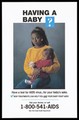 A black woman in a yellow jumper holds a baby with his rattle on her knee representing a warning to potential mothers to take an AIDS test by the New York State Health Department. Colour lithograph.
