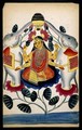 Lakshmi lustrated by two elephants. Watercolour, 18--.