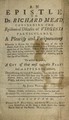 An epistle to Dr. Richard Mead, concerning the epidemical diseases of Virginia, particularly, a pleurisy and peripneumony: wherein is shewn the surprising efficacy of the Seneca rattle-snake root, in diseases owing to a viscidity and coagulation of the blood. Such as pleurisies and peripneumonies, these being epidemick, and very mortal in Virginia, and other colonies on the continent of America, and also the Lee-ward islands : to which is prefixt, a cut of that most valuable plant and an appendix annexed, demonstrating the highest probability, that this root will be of more extensive use than any medicine in the whole materia medica, and of curing the gout, rheumatism, dropsy, and many nervous diseases / by John Tennent.