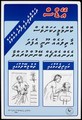 A man receiving a shave and a hair cut at the barbers representing the dangers of using unsterilised sharp instruments and contracting AIDS; an AIDS prevention advertisement in Maldivian by the Department of Public Health, Maldives. Colour lithograph, ca. 1996.