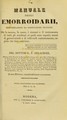 Manuale degli emorroidarii : considerazioni ed osservazioni pratiche su la natura, le cause, i sintomi e il trattamento di tutti gli accidenti ai quali sono esposti, mezzi di preservarneli e di sollevarli costantemente, regime che loro conviene / del dottor G.F. Delacroix ; prima traduzione dal francese, del C.G.R.