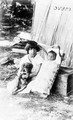 M0003188: Two Ojibwe children and a dog sat outside a tent, "Detroit Lakes, Minnesota"