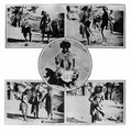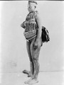 M0012546: Young girl wearing brass spiral anklets and holding an umbrella. Ibo, Nigeria / M0012547: Man wearing a chain mail head-dress, Ghana