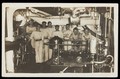 Sailors posing in an engine room. Photographic postcard, 191-.