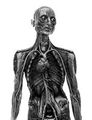 M0012215EA: Italian anatomical figure in wax showing anterior view of arteries in the head and torso, 18th century