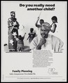 A man contemplates the logistics of having more children: family planning in Lagos, Nigeria. Colour lithograph by Lagos State Ministry of Health, ca. 1994.