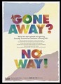 Two red ribbons representing Aids awareness decorate the words 'Gone away? No Way!'; an advertisement for the National Aids Helpline by the Liverpool Health Promotion Service. Colour lithograph, 1997.