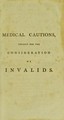Medical cautions : chiefly for the consideration of invalids. Containing essays on fashionable diseases, the dangerous effects of hot and crouded rooms, an enquiry into the use of medicine during a course of mineral waters, on quacks, and quack medicine, and lady doctors. And an essay on regimen, very much enlarged ... / By James Makittrick Adair.