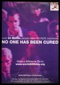 Over 34 million people have HIV/AIDS worldwide, no one has been cured : make a difference. Go to www.worldAIDSday.org : World AIDS Day is 1st December : for free, confidential information about HIV and AIDS and sexual health call 0800 567 1123 (available 24 hours) / NAT (National AIDS Trust).