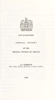 - [Report 1970] / Medical Officer of Health, Salford County Borough.Salford (England). County Borough Council.Date: 1970