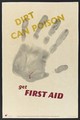 A handprint with a bleeding cut in the heel, representing the danger of septicaemia. Colour lithograph after L. Cusden.
