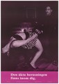 A woman in a short polka dot skirt leans back as a man standing in front of her grabs her hands in the act of making love; one of a series of AIDS prevention advertisements for Swedish addiction support groups including the AIDS delegation, the Federation of alcohol and drug awareness, Youth Federation and Soldiers Against Drugs. Colour lithograph by Rex, 1992.