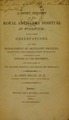 A short account of the Royal Artillery Hospital at Woolwich : with some observations on the management of artillery soldiers, respecting the preservation of health addressed to the officers of the Regiment, and dedicated to the Master-General and Board of Ordnance / by John Rollo.