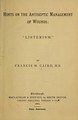 Hints on the antiseptic management of wounds : listerism / by Francis M. Caird.