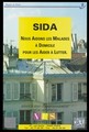The roof tops of buildings in Paris with the message: "We help patients at home to fight AIDS"; an advertisement by Mairie de Paris and VLS [Vaincre le SIDA]. Colour lithograph.