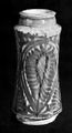 M0011900: Photograph of a 15th or 16th century cylindrical drug jar from Valencia, Spain